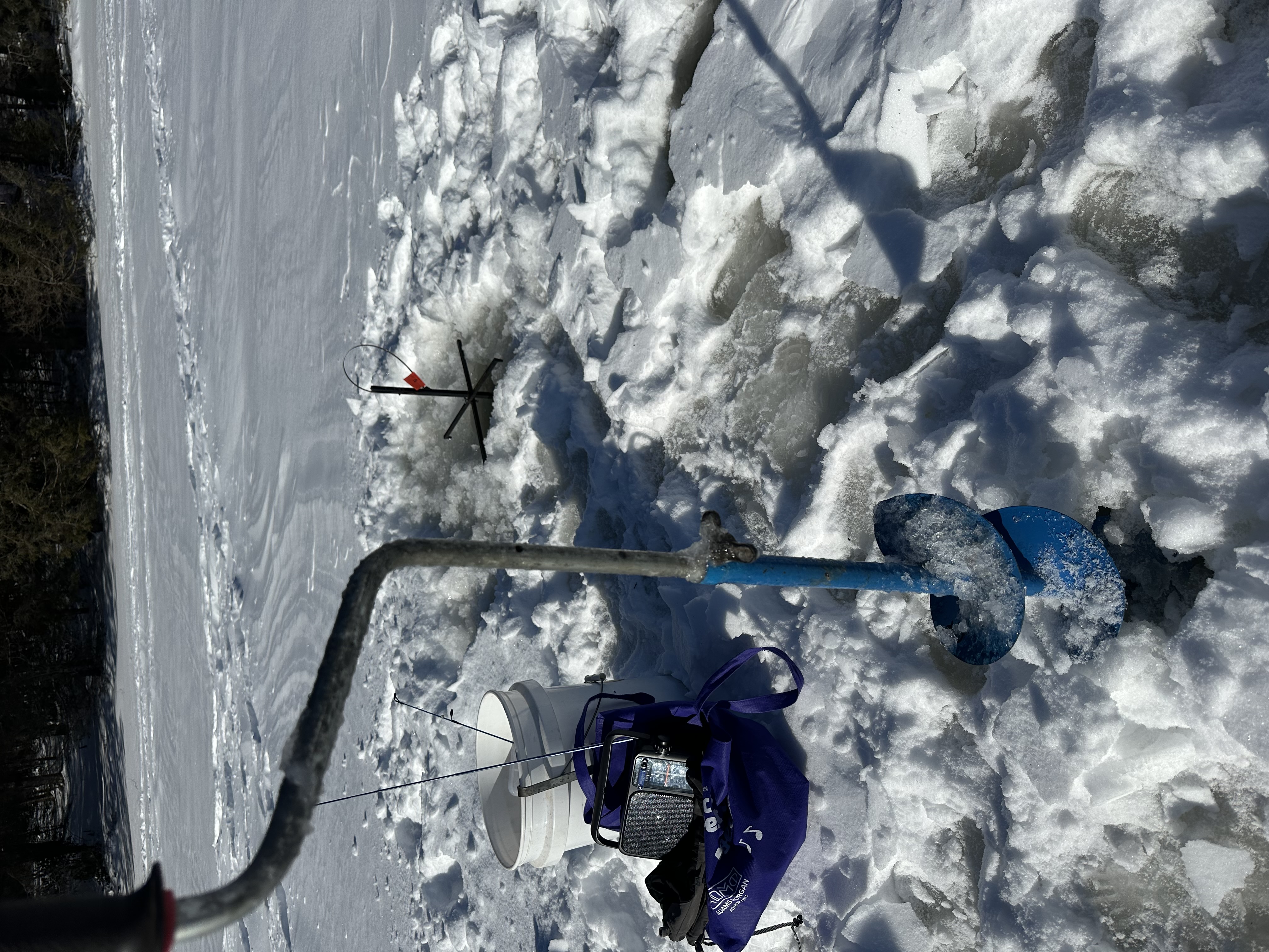 I have wanted to try ice fishing for forever. While it's been cold enough to ice fish in winters past, we never quite got around to it. When the opportunity arose again this year, I was determined to try it out. Rob had most but not all of the equipment: we were crucially missing an ice auger, which is what drills the hole in the ice, so I found a used on on Facebook Marketplace. Moreover, one of the tip-ups (more on that later) was broken so I fixed it. With that, we had everything we needed.